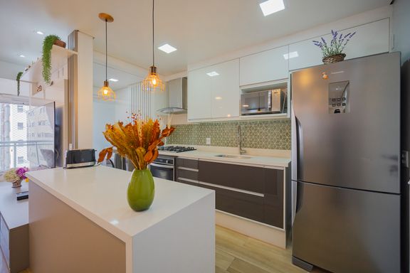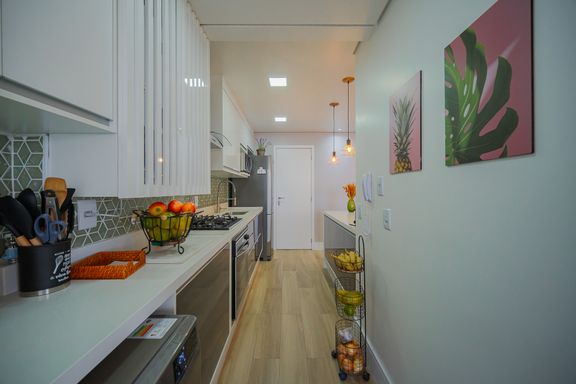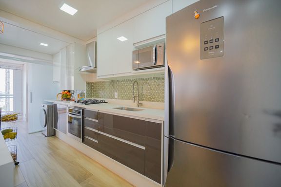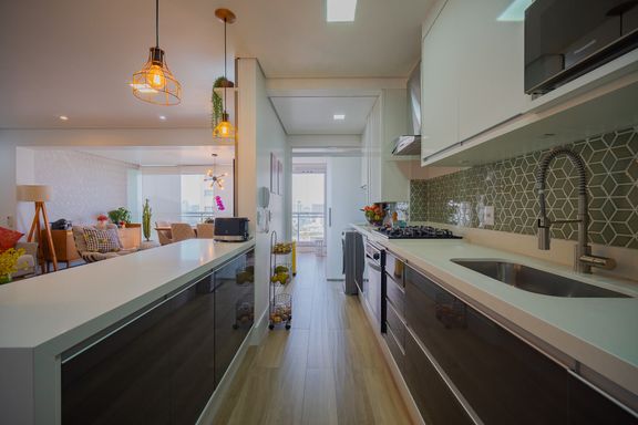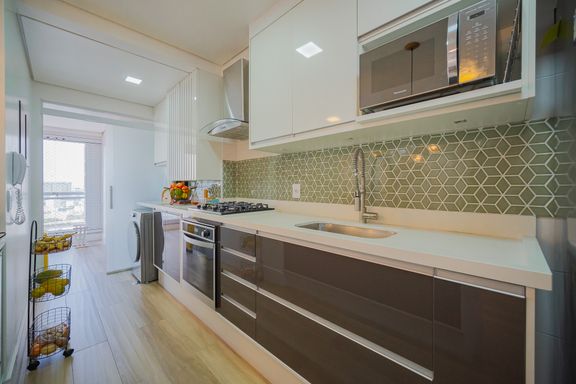 Cozinha funcional e equipada com cooktop, forno embutido e armários planejados de alta qualidade