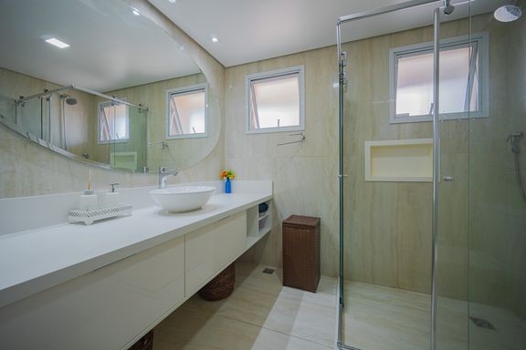 2 Suítes exclusivas com móveis planejados, closet, ar-condicionado e sistema de aquecimento de água