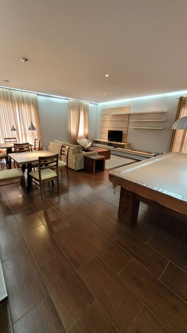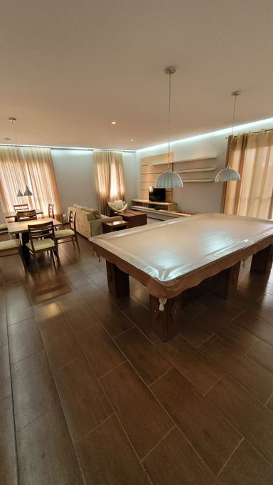 Salão de Jogos com mesa de bilhar e mesas para jogos de tabuleiro e baralho