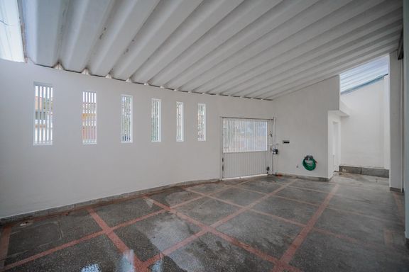 Garagem coberta para 2 veículos, garantindo proteção e comodidade