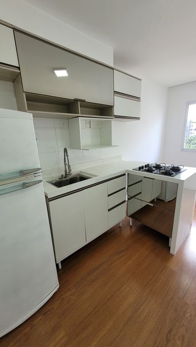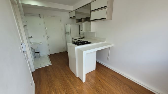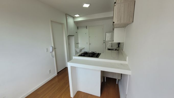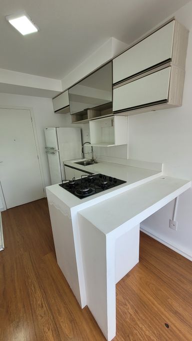 • Totalmente equipado: Já vem com cortina blackout no quarto, box blindex no banheiro, bancada moderna, cooktop, armários e guarda-roupas. Economize tempo e dinheiro com sua mudança!